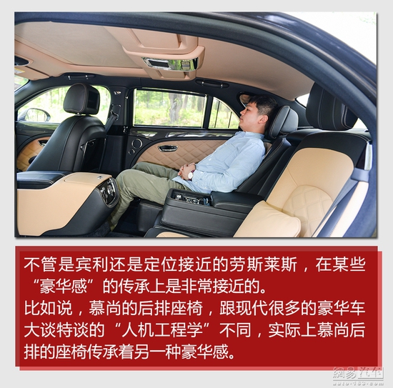 坐姿偏向于端正,不适合“卧“着,也许你要说不舒适,但这只是很片面的考虑。经常出没于正式场合的宾利门,乘客或车主都身着正装,这情况下”卧“在它的后排显然有悖常理。