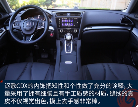 讴歌CDX的内饰把知性和个性做了充分的诠释,大量采用了拥有细腻且有手工质感的材质,缝线的真皮不仅视觉出色,摸上去手感非常棒。相比竞争对手采用“性冷淡”的工业范,讴歌CDX的日式豪华让人很温暖,把知性美诠释地恰到好处。