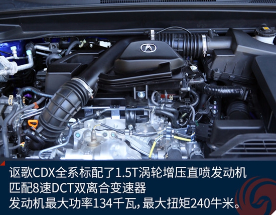 讴歌CDX全系标配了1.5T涡轮增压直喷发动机,匹配8速DCT双离合变速器,发动机最大功率134千瓦,最大扭矩240牛米。实际驾驶中,发动机的动力足够应付城市驾驶,尤其是速度在120km/h以内时可以说是游刃有余。