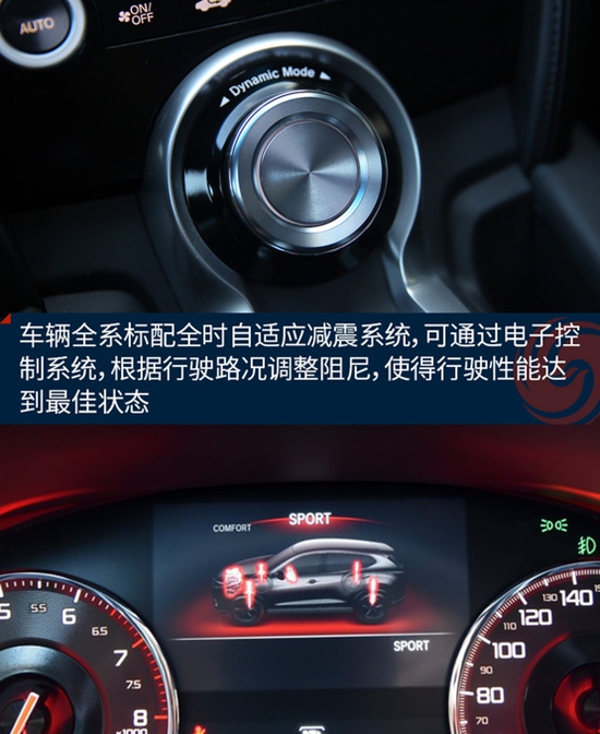 车辆全系标配了“Adaptive Damper System”全时自适应减震系统,可通过电子控制系统,根据行驶路况调整阻尼,使得行驶性能达到最佳状态,当然也可以通过驾驶模式选项,选择“舒适”或者“运动”模式。