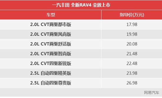 继海外推出改款车型之后,一汽丰田全新RAV4也于今日正式在国内进行了更新。新款车型最明显的变化体现在前脸处,同时车系的配置也进行了调整,并且换装了新的2.0L发动机,而2.5L动力则继续沿用。哦对了,还有一点,一汽丰田给这个改款RAV4起了一个更接地气的中国名字-荣放!