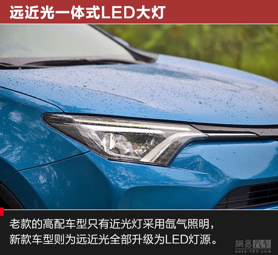 LED远近光一体式大灯是全新RAV4上新增的配置,老款车型上即使是顶配也只是为近光灯配备了氙气灯源。另外,据厂家人员表示,新车的车头设计还考虑到了对行人的保护。