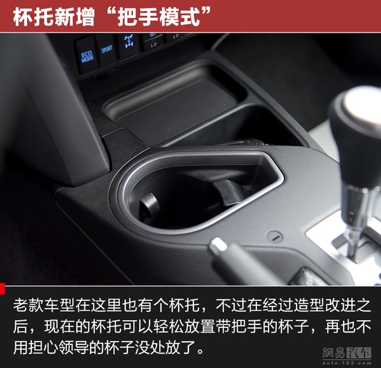 其次,前排杯托也进行了重新设计,改进之后可以轻松收纳带把手的杯子,这可是结合国情的贴心改动,很像丰田的做法。除了这两处之外,内饰在样式方面基本与老款车型一致。
