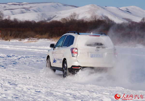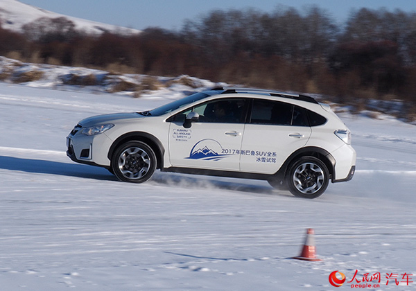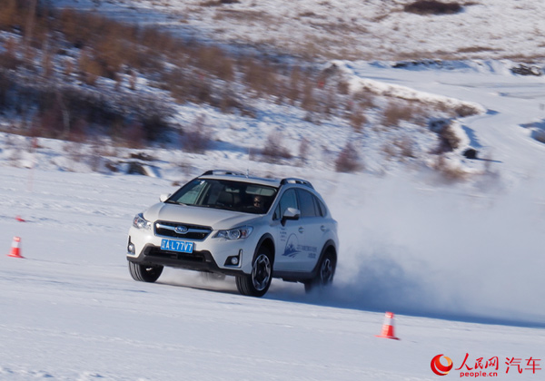 最先来到冰面体验的是斯巴鲁XV车型。2.0L排量的水平对置发动机,最大输出功率150马力,峰值扭矩196牛·米,怎么听都觉得是个纯粹的家用车。没错,动力大在这里没什么用。如果一味地加大油门的话,动力只会随着发动机的怒吼被浪费,空转的轮胎只能让动力流失的更多。