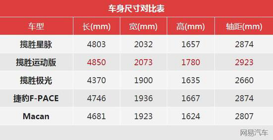 从照片上看,揽胜星脉显得很大,甚至会给人和揽胜运动版一样大的错觉,其实它的体格还是要比大哥小一圈的,不过肯定要比揽胜极光大不少,就是和同平台的F-PACE比,星脉也是绝对的大块头。
