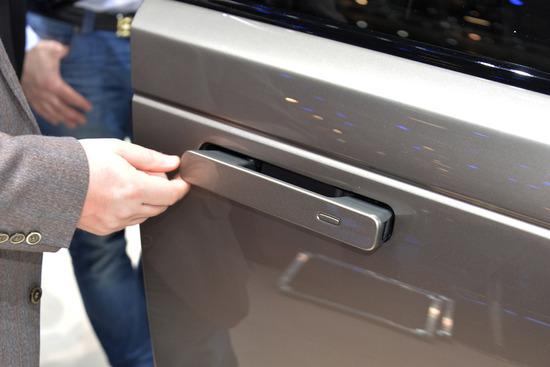 有几个细节也是值得关注的,星脉是揽胜家族中首款使用矩阵式激光大灯的车型,照射距离550米,要知道揽胜还都在使用氙气大灯呢。门把手被设计成了隐藏式,每次解锁时的那一伸一收,绝对提升逼格!揽胜家族都爱配大脚,这次星脉也不能例外,展车是22寸的,令人羡慕吧。