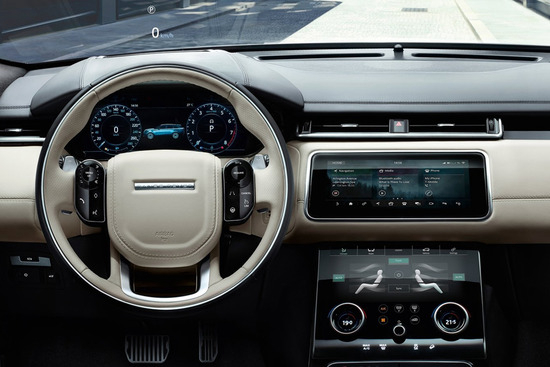 看完了外面,咱们再到车内看看,内饰确实是典型的揽胜家族风格,透着豪华高雅的气质,这是众人皆知的,此外,车内还配备了三块大尺寸的液晶屏,它们分别是12.3英寸的全液晶仪表和中控台上下两块10英寸的液晶屏,这样实体按键就从中控台上消失了,仅剩下空调温度和音量的三个调节旋钮,对了,方向盘的多功能按键也都是触控式了,是不是科技感爆棚?