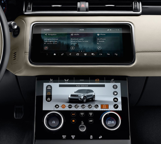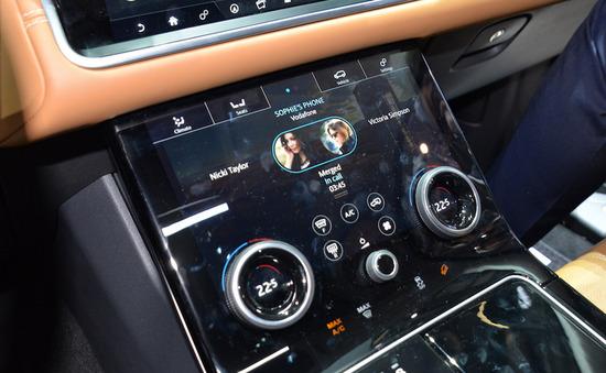 中控台上下两个液晶屏组成了星脉的多媒体系统,它的官方名字叫InControl Touch Pro Duo,除了常规功能外,它还具备学习功能,这样是为了更好地为车主提供符合他们习惯的服务。还有一个细节需要注意,就是路虎的全地形反馈系统,之前要么是旋钮要么是按键调节,这次也居然都集成在了中控台下方的触摸屏内,这应该算是路虎车系的一个小创新了吧。