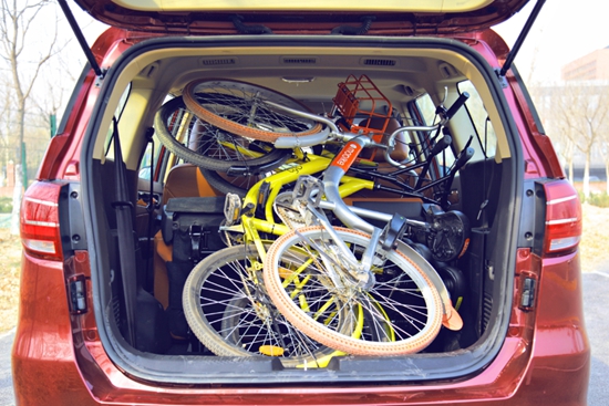 宝骏730的后备箱装两台小黄车刚刚好,而威旺M50F除了装两台小黄车,还多装了一台摩拜。这个动机是在暗示什么?难道还有一个第三…。
