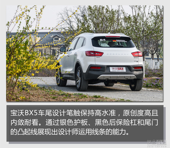 就造型设计而言,宝沃创立了自我DNA,精致中不乏简约和低调的气质,给人传达出内敛和深邃感来。相比BX7而言,气势如虹的中网比例未变,更狭窄的大灯让目光更具凝聚力,更精致的雾灯装饰部件也说明BX5相比于大哥BX7而言更在乎颜值表现。