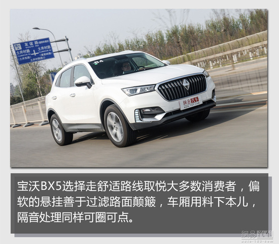 BX5是一台适合悠闲驾驶的SUV车型,转向手感缺乏沟通感,弯道中的摆幅较大的车身姿态也能够看出初段偏软设定的倾向。总而言之,这是一台适合温和驾驶的车型,有着良好的隔音和滤震表现,很容易给车内每一位乘员带来好感来。