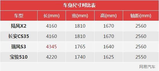车身尺寸方面,长宽高分别为4160/1810/1670mm,轴距为2560mm,与竞品车型相比,数据表现不相上下,而它的车身尺寸,与长安CS35也是完全一致的。