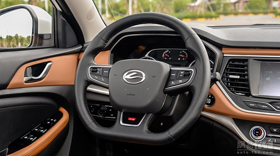 三幅式方向盘除了采用真皮材质之外,运动造型的平底设计体现了个性的理念,集成多媒体和定速巡航控制按钮。