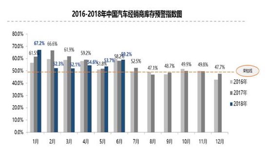 7月4日,根据中国汽车流通协会发布的“中国汽车经销商库存预警指数调查”VIA(Vehicle Inventory Alert Index)显示,2018年6月汽车经销商库存预警指数为59.2%,环比上升5.5个百分点,同比上升1个百分点,库存预警指数位于警戒线之上。