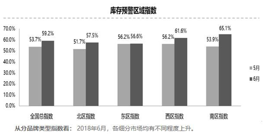 从区域指数情况看:6月份全国总指数为59.2%,北区指数为57.5%,西区指数为61.6%,南区指数为65.1%,东区指数为56.6%。东区指数与上月基本持平,北区、南区指数和西区指数环比上升。