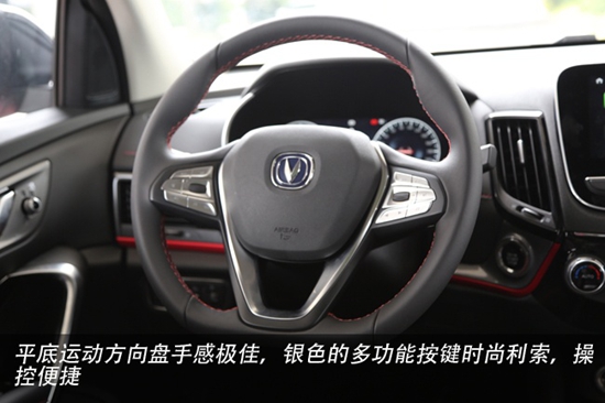 新CS55的内饰设计层次丰富更加精致同时带有一点轻奢的气息。X型中控搭配D型方向盘设计具有很强的视觉冲击,可谓是动感与科技兼备。