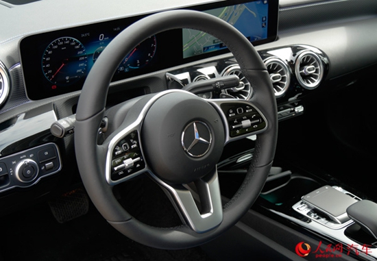 奔驰全新一代的设计语言在国产A级上被完美地移植,平直的中控台结合着层次变化,颇有几分复古味道,能让人一见倾心。新的三辐方向盘从样式到手感都不错,左右两侧的多功能按键将分别控制两个中控屏幕,特别直观。