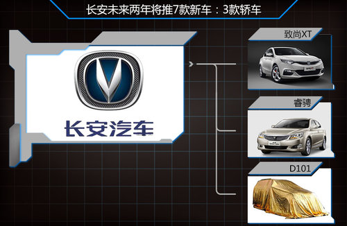 截至目前,长安汽车在今年相继推出致尚XT 、睿骋两款全新车型,未来两年还将再推出一款C级轿车代号为D101,进军行政级轿车和高端公务车的细分市场。此外在SUV的产品布局中,长安汽车在推出了首款SUV车型CS35后,计划在明年再推出CS95、CS75以及CS55三款SUV车型,以进一步丰富旗下SUV产品阵容。