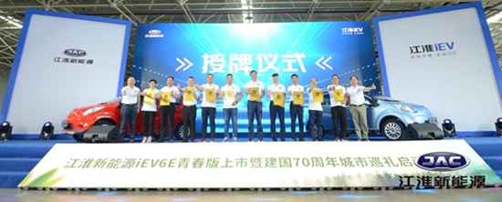 今年是新中国成立70周年的大庆之年。江淮新能源作为首开我国新能源汽车产业化先河的汽车品牌,始终坚持技术创新与开放合作并举,致力为用户打造“安全可靠,值得信赖”的纯电动汽车。为进一步倡导绿色出行,展示江淮新能源最新技术研究成果,献礼新中国70周年华诞,江淮新能源现场启动建国70周年城市巡礼活动,在全国100多位权威媒体的见证下,举行了发车仪式。