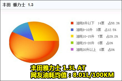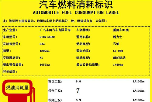 工信部公布的雅力士1.3升自动挡的综合油耗是:7升 搜狐网友:8.01升