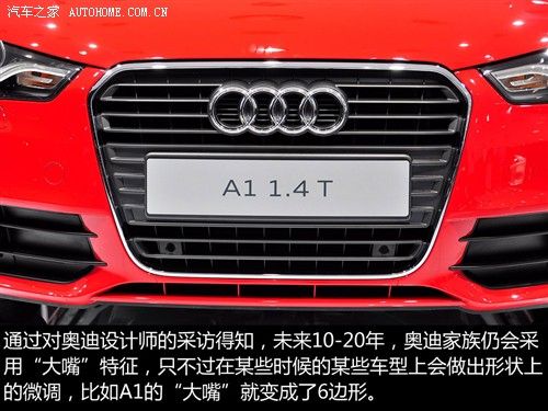 虽然同样使用了大嘴的设计,但是奥迪A1在进气口的形状上却略有不同,我们熟悉的A6、A4、Q5甚至A3等车型都采用倒梯形的设计,而A1则使用了更加新颖的六边形进气口,在需要个性的时候奥迪终于下狠心变了变脸。另一个亮点是贯穿车顶的金属装饰条,还记得前两天介绍的标致RCZ(点击了解)吗?两车在这个设计上有异曲同工之妙。