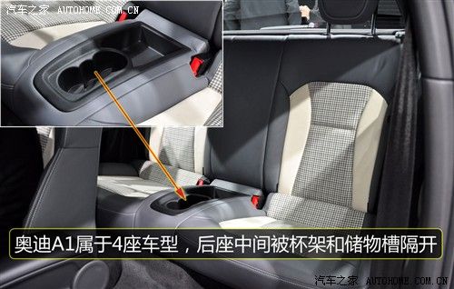 首先座椅的椅型和配色就不够吸引人,再加上各种调节都是手动的,如果不知道是A1的话还以为是一款几万元的车型。而后排座椅的布置则有点像大众CC,虽然设计了靠背但是座椅却换成了杯架和储物空间,2+2的设计正好和MINI COOPER相同。