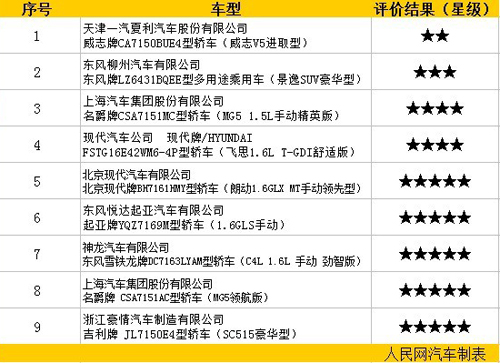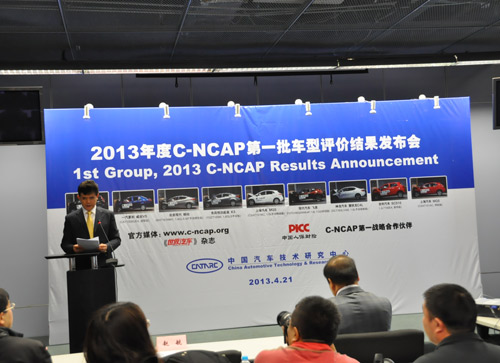 人民网上海4月21日电(记者 范程)今日,中国汽车技术研究中心在上海国际车展上发布了2013年度C-NCAP第一批9个车型的评价结果。本次发布结果的9个车型中,包括1个小型车、7个A类车,1个SUV车型,试验车辆全部由C-NCAP管理中心从各车型专卖店直接购买。